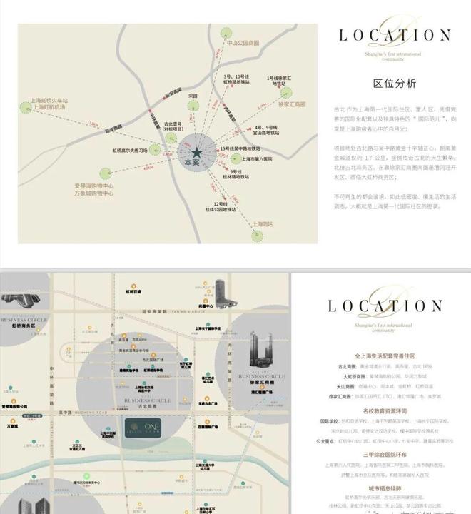 一、区位和交通:1.1、我们地处闵行长宁交界的古北板块,项目依托虹桥交通枢纽和长宁徐汇商圈,交通便利配套成熟,是上海第一个大型高标准的国际豪宅社区。